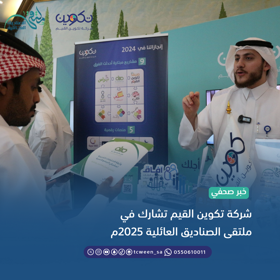 شاركت شركة تكوين القيم في ملتقى الصناديق العائلية 2025م، المنعقد في مدينة الرياض تحت إشراف جمعية صلة للعمل العائلي التنموي، وذلك في إطار دورها الريادي في تقديم الحلول التربوية والاجتماعية، وبناء الشراكات الاستراتيجية التي تسهم في تعزيز الأثر المستدام للصناديق العائلية.
