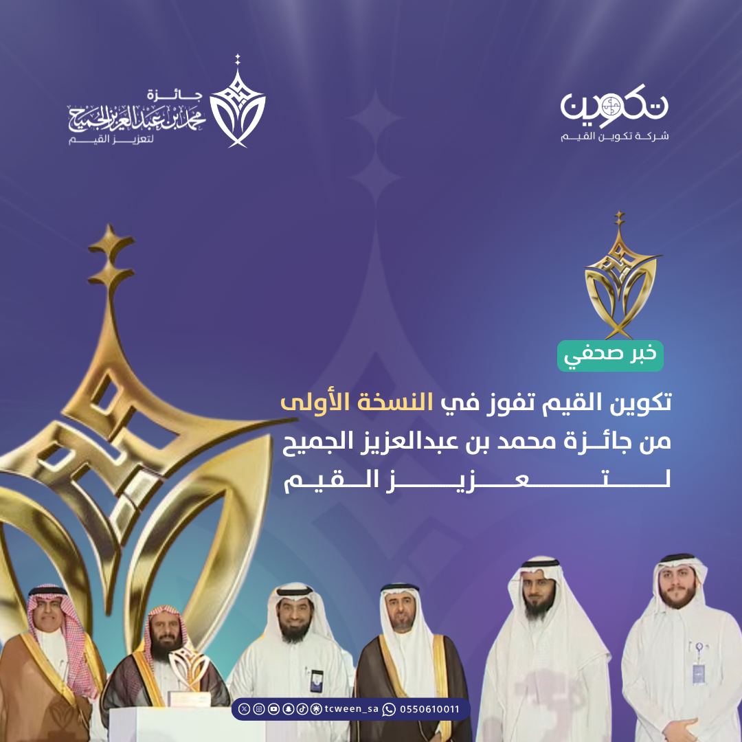 حقّقت شركة تكوين القيم إنجازًا نوعيًّا بفوزها في النسخة الأولى من جائزة محمد بن عبد العزيز الجميح لتعزيز القيم، عن مبادرتها الرائدة منصة 360 تربية، وذلك ضمن مسار المبادرات القيمية في الجائزة.